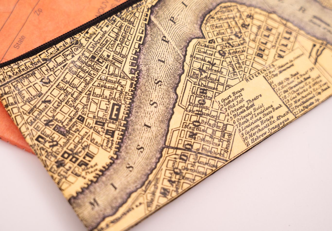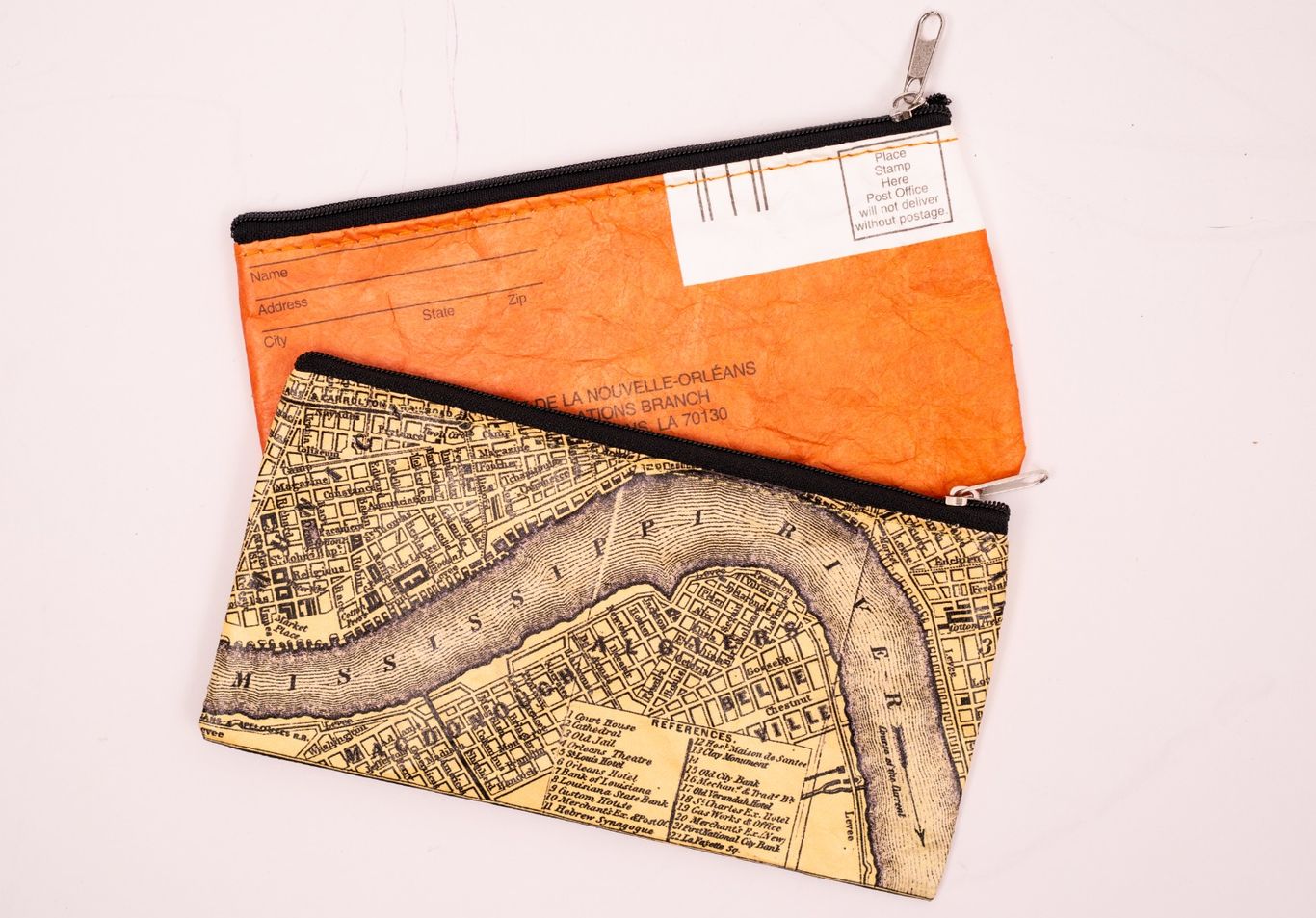 Our City of New Orleans Vintage Map wallets are made of Tyvek and have a zipper for easy access.